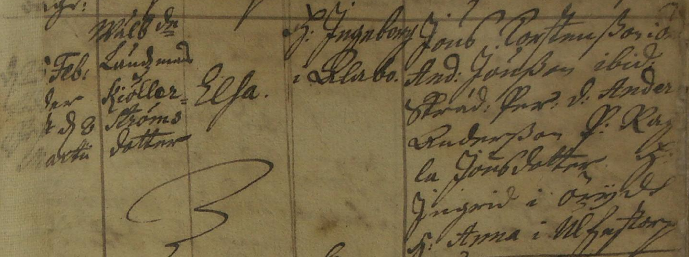 ElsaKjöllerström födelsenotis Öreryd (F) C:1 (1688-1770) Bild 11 / sid 13 |