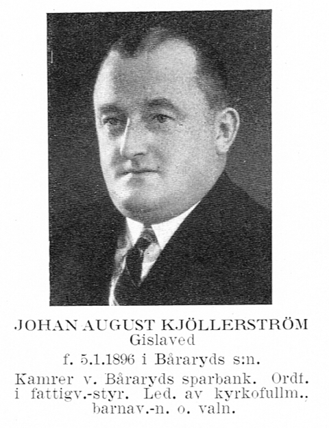 ![]() Johan August Kjöllerström. Född 1896-01-05 i Båraryd, Gislaved (F). Död 1962-03-18 i Vänersborg (P). |