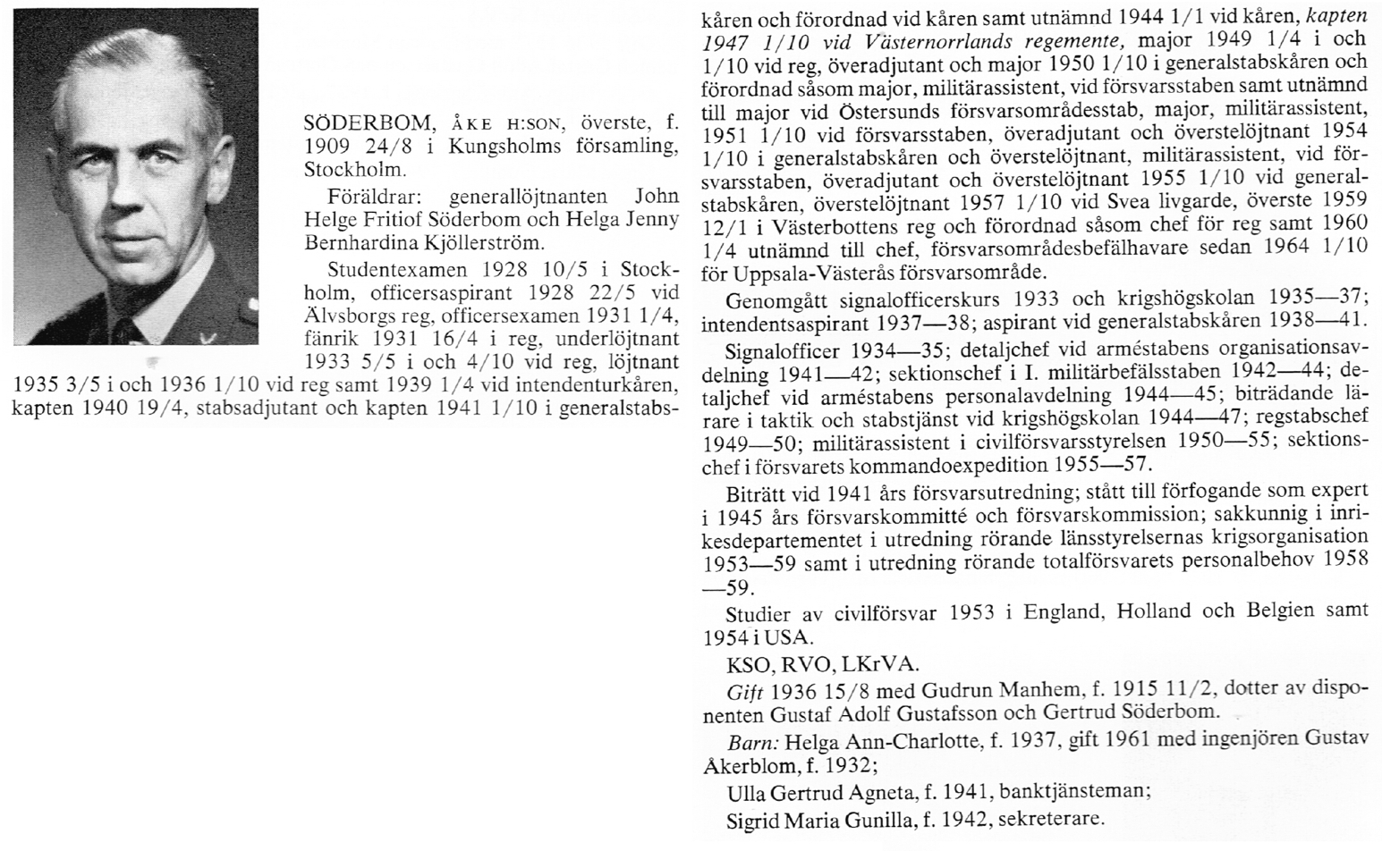 Född 1909-08-24 i Kungsholm eller Ulrika Eleonora (AB). Död 2002-01-19 i Falkenberg (N). Överste |