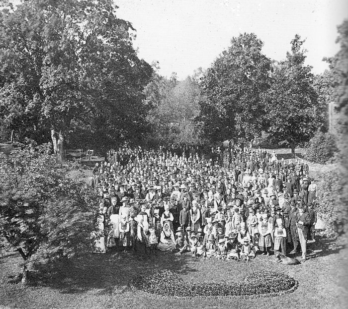 Slotteröl. Varje år bjöds samtliga anställda på slåtteröl Bilden tagen 1896 |