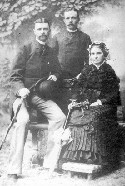 Bröderna Robert och Edvard Sager tillsammans med modern Marie. |